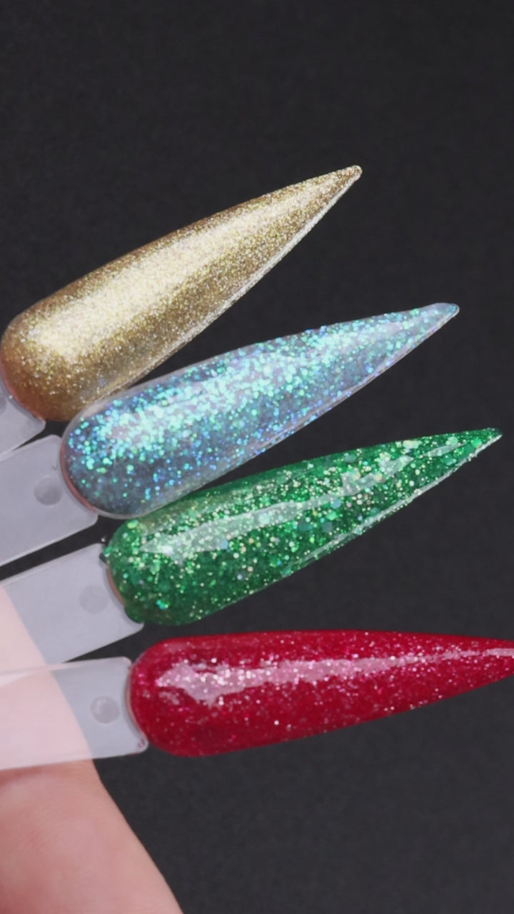 These polishes are the perfect staples for the festive season, whether you’re creating full glitter looks or adding shimmering accents to your designs.